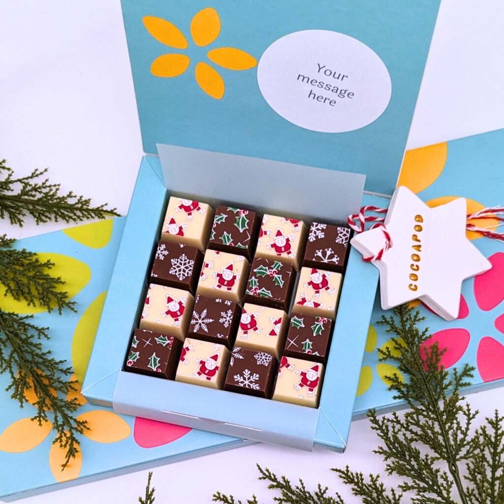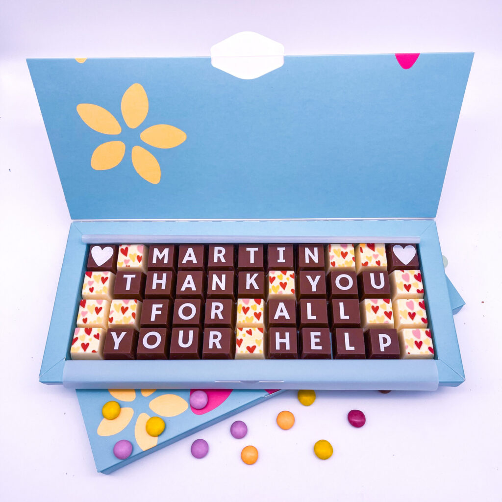 The logo uploaded to the chocolate will also be applied to the front of the card