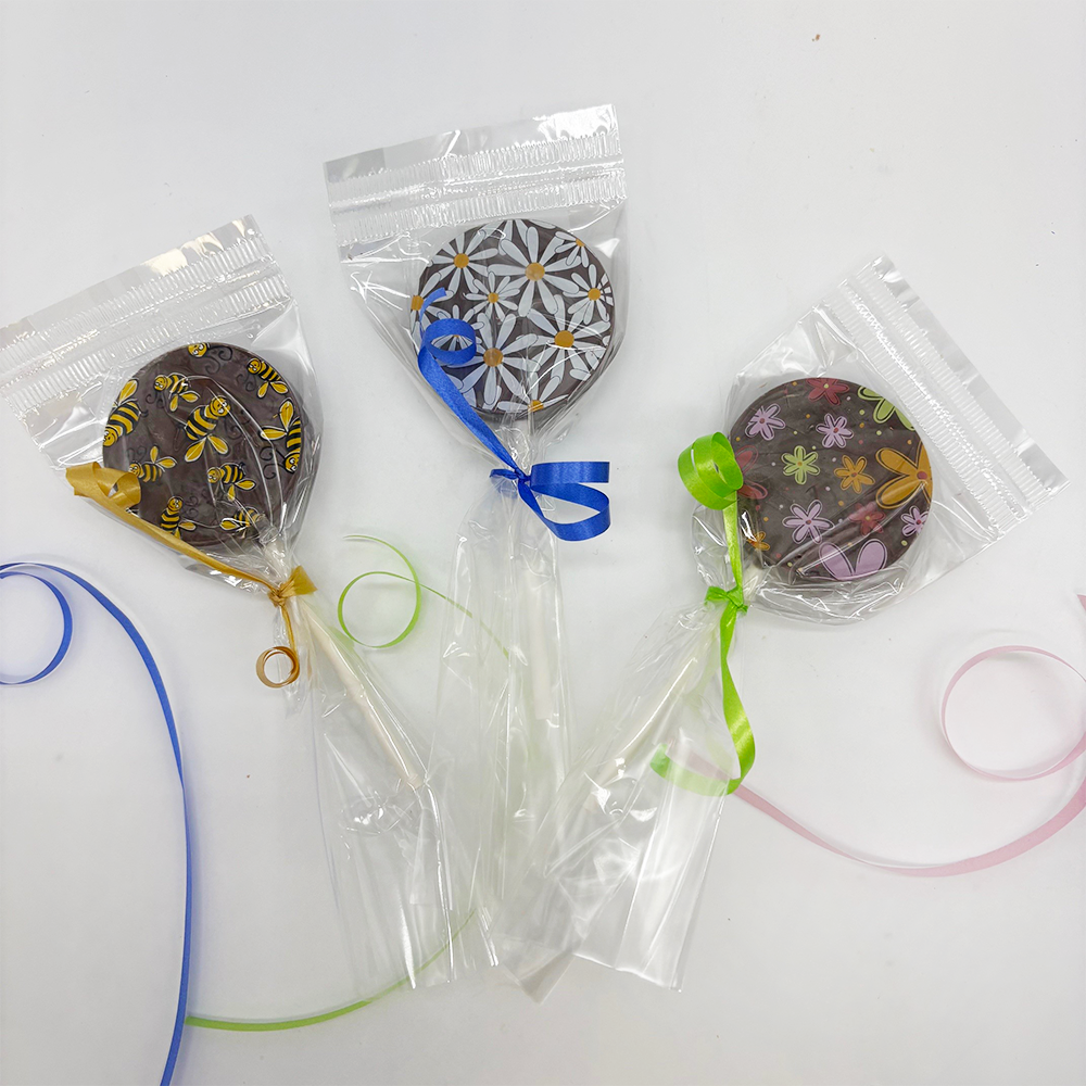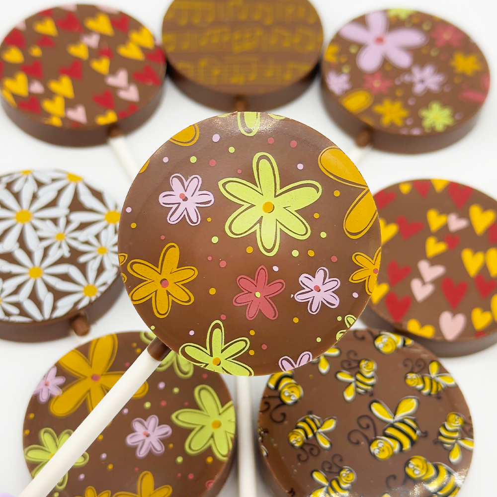 Our 10-pack of Lollies come in milk chocolate, each decorated with a unique pattern.