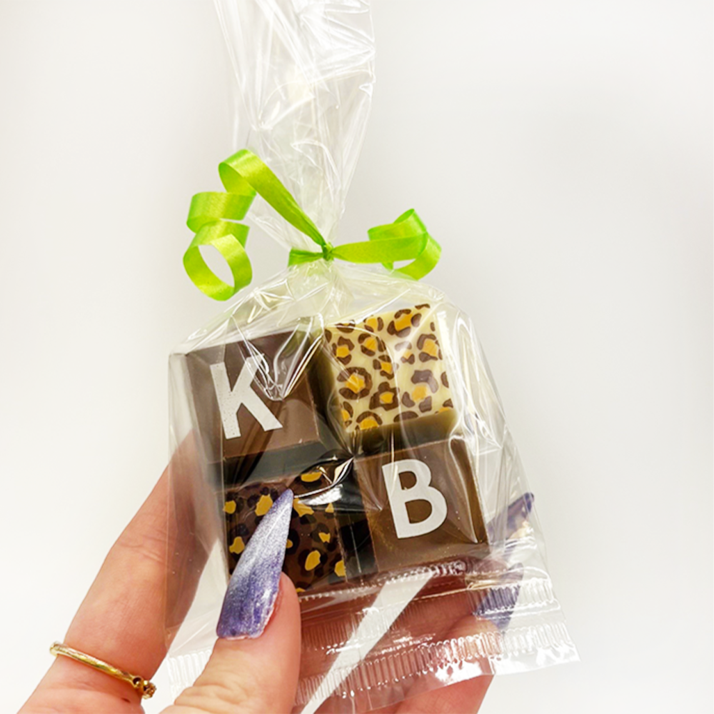 A 4 pack of Chocolate squares, personalise with any letters and patterns. Perfect for gifting to family and friends!